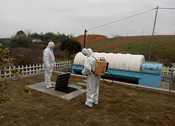 2021年12月22日科然環(huán)境運維組員工為號召國家防控疫情政策,對各個終端和管網(wǎng)的污水池進行全面的清掏、消殺工作。運維組消殺人員配有專業(yè)的防護服、手套、口罩以及專業(yè)的消殺工具。
